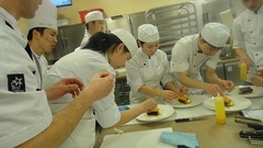 3セリに入り、実習で皿盛りをやっているので手伝ってくれる学生たちの手際もだんだん良くなってきています。