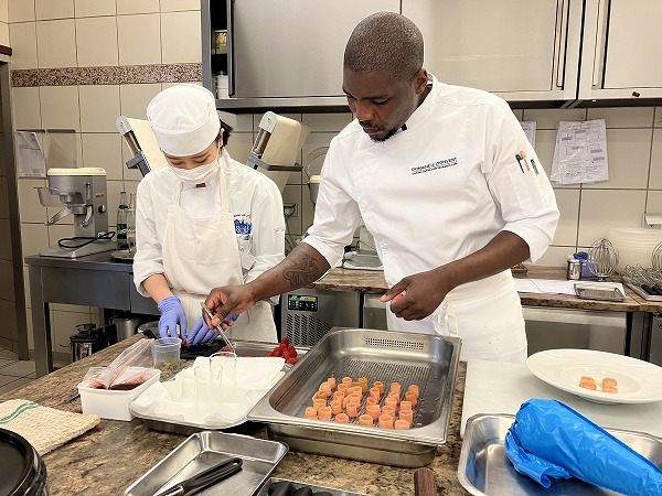 「シェフに任せられた作業を確認すると「いいね!」と言っていただき、リラックスした雰囲気でアシスタントが出来ました。研修生とも盛り付けを一緒にしたり、色んなお話を聞けたりと貴重な体験が出来ました。」