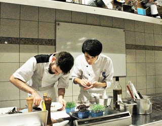 今回は、バルト氏とクーザン氏がそれぞれ一品を、クーザン氏が等々力君と一緒に一皿を作成して披露してくださいました。