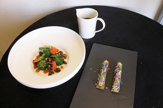 今回は、現在実際にレストランのコースで出しているメニューから2品を作っていただきました。