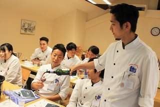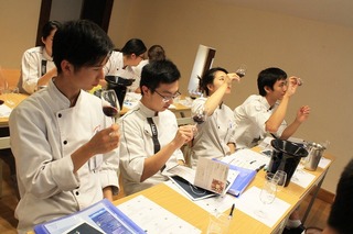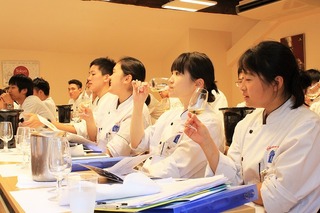 ワインを試飲するごとに、そのワインに合う料理・デザートを考えました。講師の先生から、「フランス料理ではこのような組み合わせが定番です。」と基本を学びつつ、「定番以外では何を思いつきますか?」など自由な発想で料理とワインの組み合わせを考えました。