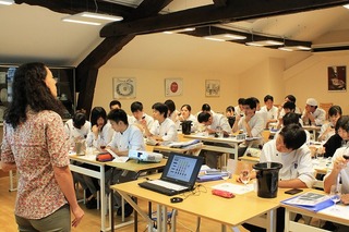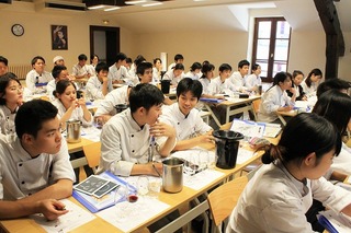 講義は、まずボルドー地方の地理条件がブドウ栽培に適していること、またそれぞれのワイン生産地の特徴を、地図を使いながら説明をされました。次にボルドーワインの特性を、色や味の観点から解説されました。ボルドーのワインの歴史は古く、フランス校のあるボージョレ地方など他の生産地では見られないものがあり興味深い内容でした。