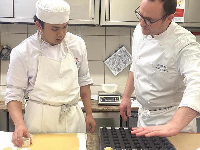 「普段の実習ではなくシェフのアシスタントをする事はとても緊張しました。初めてだったのでどこまで踏み込んでいいのかわからず積極的になれなかったので、次の機会があれば色んなことをさせてもらえるよう、フランス語でどんどん話しかけていこうと思います。フランス語でのコミュニケーションの難しさを実感しました。お菓子の勉強と並行してフランス語ン勉強ももっとしっかりしていこうと思いました。」
