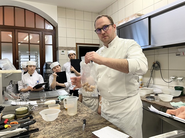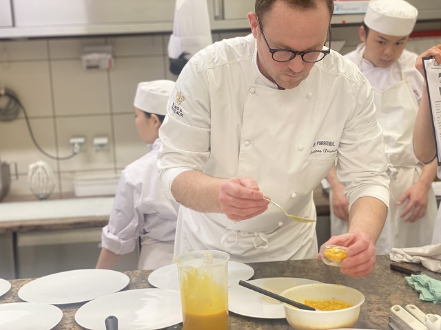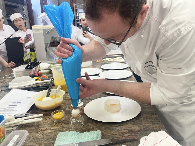 「初めての外来講習のアシスタントをしてみて、最初は自分のフランス語がシェフに伝わるか不安でしたが、周りのサポートやシェフが色々気づいてくれたおかげで無事に講習をやりきることが出来、とても面白かったです。アシスタントの経験は擬似研修の感覚だなと思いました。次回以降も機会があればもっとスムーズに出来るようにし、もっとフランス語でコミュニケーションも頑張ります。」