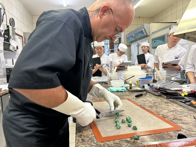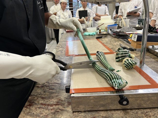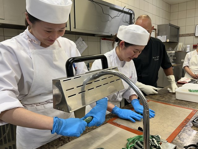 研究生も真似をして一生懸命形を作っていきますが本当に難しい!シェフのすごさが改めてわかりました!
