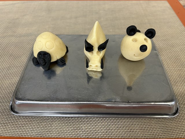 まずは身体と耳などを作っていきます。10分もかからないうちにねずみ、いのしし、かめを作られたのには研究生もびっくりです!とっても愛らしい顔ですね