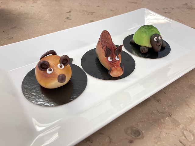 ネズミ・カメの3種類を作っていただきました。アーモンドと砂糖を主材料としており観賞用ではな