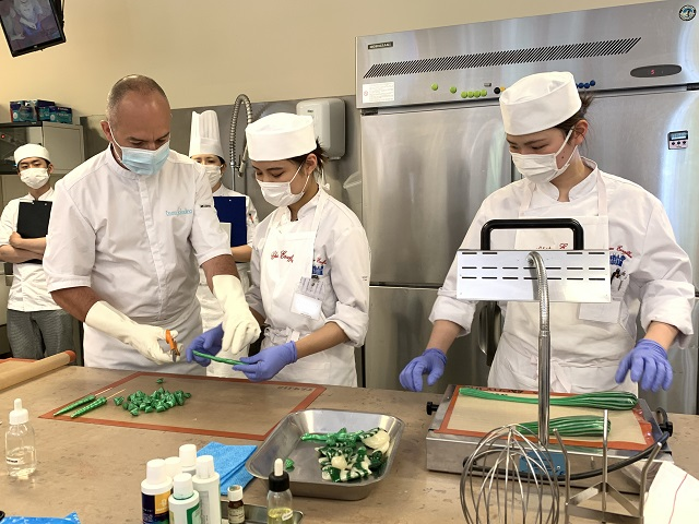 『 日本であまり見かけなかったコンフィズリーの授業で、それぞれのお菓子に知らなかった新しい技法や食感、味を経験できてとても勉強になり、日本にこの美味しさが普及したら良いなと思いました。カカオニブを合わせたキャラメルを食べたことがなかったですが、味や食感のアクセントにとても使いやすい食材だと感じました。講師の方は1つ1つの仕事が早く、特にマジパン細工はあっという間でした。何度作っても、いつも正確な仕事ができるパティシエになりたいと思いました。』