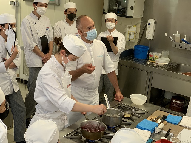 『 今回の授業の中で、様々な経験をさせていただきました。作業のポイントや理由を実践しながら教えていただけたのでわかりやすく、納得しながら作業を進めることが出来ました。先生の和訳なしではわからないフランス語もあり、不安になることも多かったので、これからもっとフランス語の勉強をして研修に行っても楽しんで仕事が出来るようになろう!と強く思いました。ギモーブが苦手だったのですが、今回とても美味しくて自分の中で革命が起きました!』