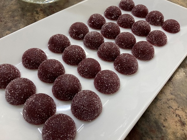 フルーツの果汁をふんだんに使用したコンフィズリー。今回はフランボワーズとバラの組み合わせで作成していただきました。フランボワーズの酸っぱさと華やかなバラの香りのバランスがとても良い一品です。