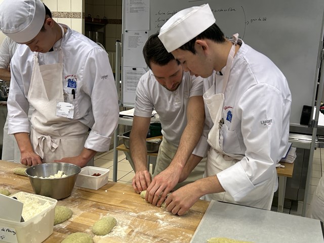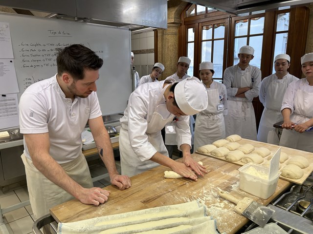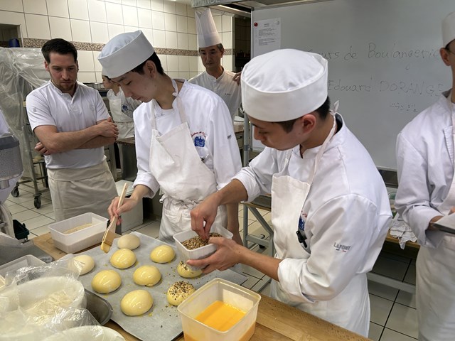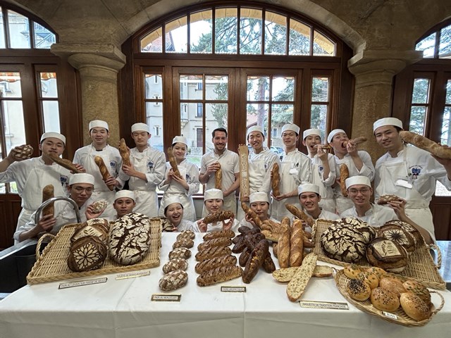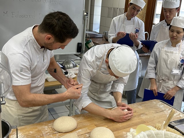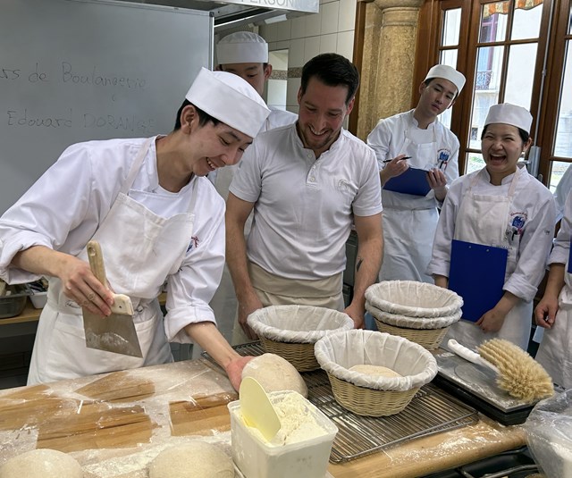 エドワール氏はパンの世界コンクール「クープ・デュ・モンド」にも出場した経験もあるパンの専門家で、今回は調理の研究生が2日間にわたって、パンの講習と実習と地方のパンについての授業を行いました。