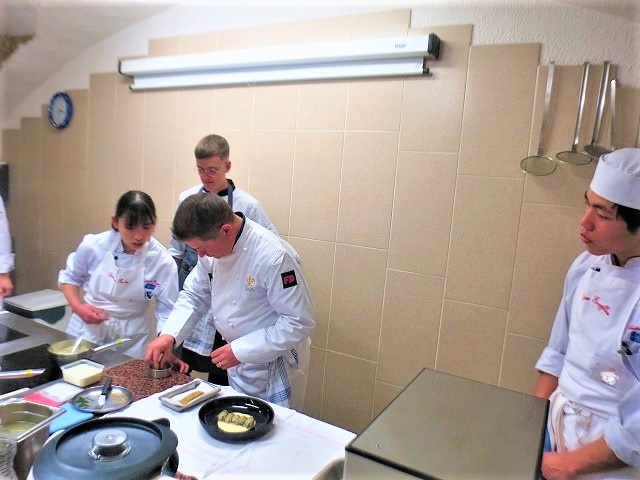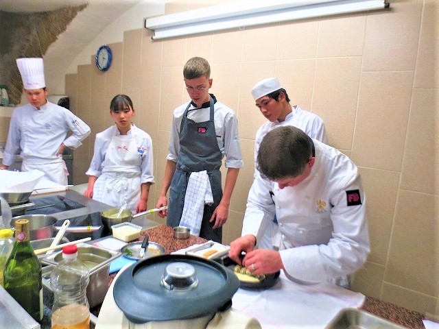 今回は、ドゥーセ氏の元で研修しているエスコフィエ校出身の研修生とアプランティ(学校に行きながら
