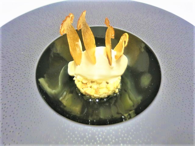 HUITRES TARBOURIECH N°2 POCHEES,Concombre, croustillant de pain de seigle,Gelée d'algues, sauce champagne