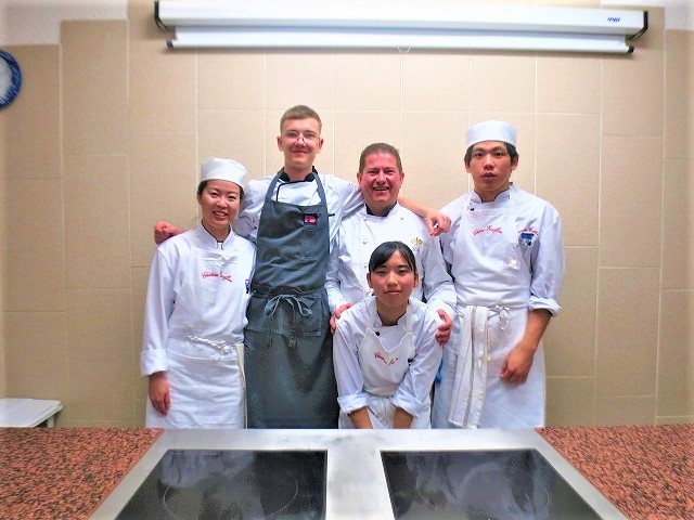 シェフを囲んで、助手を務めた研究生2名と、研修生、アプランティ。