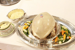リヨンの多くの高級レストランで提供される料理。ローヌ・アルプ地方特産のブレスの鶏の胸肉と皮の間にトリュフのスライスをはさみ、ヴェッシーという牛の膀胱の中に入れ、ブイヨンの中でゆっくりと火を通した料理です。