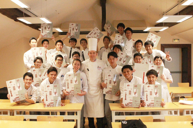 最後に未来のシェフ達へ次のようなメッセージをいただきました。「もうすぐみなさんは研修に出ますが、フランスでの経験がみなさんの料理の基礎となりますように、いい経験をして、料理人は大変だけど、諦めないで頑張ってください。」