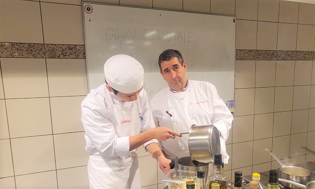 今回の調理外来講習はリヨン郊外にあるChasselay(シャスレー)という町にあるミシュラン1つ星のレストランGuy LASSAUSAIEのシェフ、M.Guy LASSAUSAIE(ギィ・ラソゼ氏)に来校していただきました。