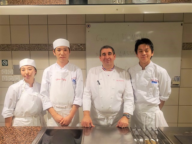 ラソゼ氏は1993年にM.O.F(フランス優秀職人章)受賞され、料理人協会【トックブランシュ】リヨン支部の会長を長らく務められました。日本のレストランとも提携をしてフランス国内にとどまらず活躍されているフランス料理界の重鎮です。研修生のスタージュ先でもあり現在研修中の研修生も来てくれました。