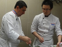 たった1時間半で3品を仕上げていくラソゼシェフと、研修生の藤元君の無駄の無い、正確且つスピーディーな姿は、きっと学生にも強い印象を与えた事でしょう。