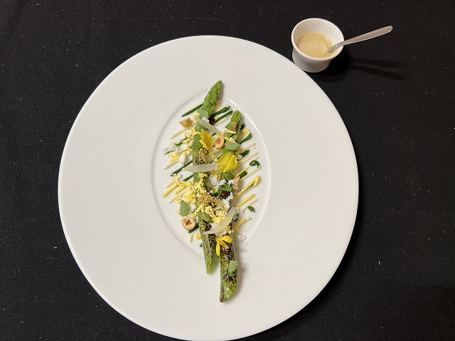 まず、旬のグリーンアスパラガスをメインとして使用した1品です。