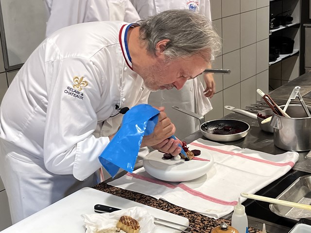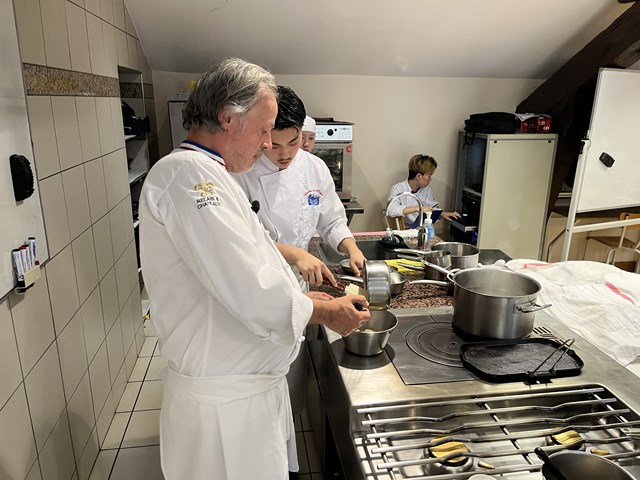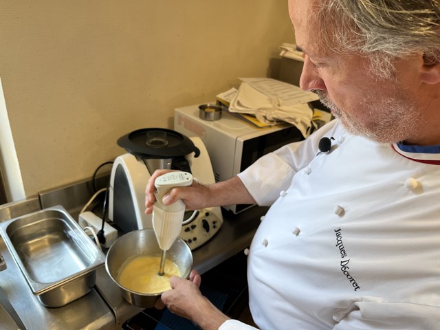 今回の外来講習は、リヨンから車で2時間ほどのVichy(ヴィシー)という町のミシュランガイド1ツ星レストランMaison DECORET(メゾン・デコレ)のオーナーシェフ、ジャック・デコレ氏にお越しいただきました。