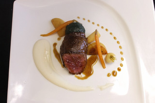 鹿をソテーし、仕上げにきのこ風味のパン粉を乗せて焼き上げました。