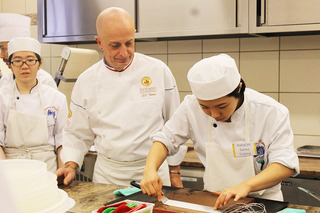 電子レンジで生地に火を通したものを仕上げに使用するなど、今までに見たことのなかった技法に学生たちも興味津々でした。