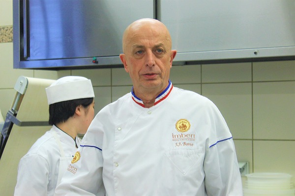 今回お越しいただいたジャンジャック・ボルヌ氏は、リヨンからほど近いサン=テティエンヌという街で『ブティック香=BOUTIQUE KAORI』を経営されており、併設したラボで少人数制の料理とお菓子の学校を主宰、そして栗の製品を扱う会社の中ではトップブランドと言える『マロン・アンベール社』の専属デモンストレーターを務められ、幅広く活躍されている方です。