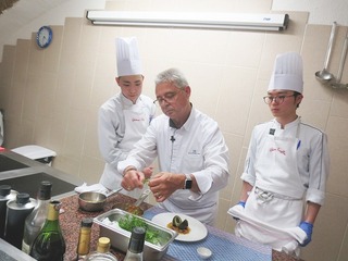 シェフの説明の一言一言から、料理に対する思いが明確に伝わっています。研究生も真剣です。
