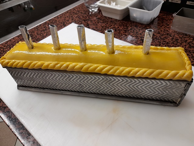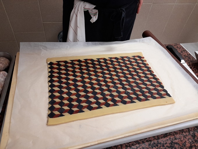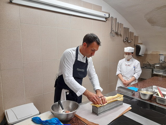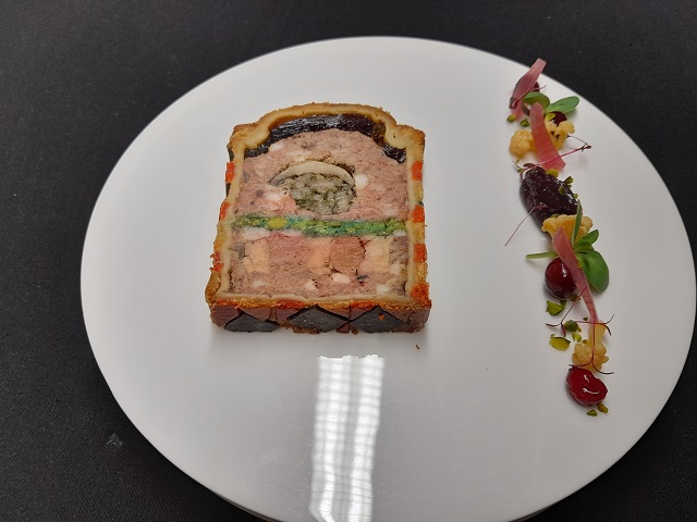ファルスの中心部までしっかり火が通り、生地の焼き色にムラがないように、オーブンの温度、加熱時間、ベンチタイムを細かく調整しながら焼き上げたパテは、生地の模様と焼き色、切り分けた際の断面も美しく、さすがは世界チャンピオンと納得する出来上がりでした。