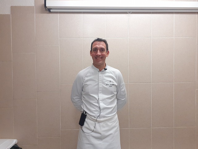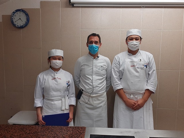 研究生たちは、コアール先生の授業に慣れてきたところですが、本日は初の外来講習が行われました。講師として来ていただいたのは、「Restaurant la Rotonde」(レストラン・ラ・ロトンド)のシェフJean=François MALLE(ジャン=フランソワ・マル)氏です。