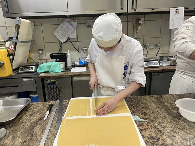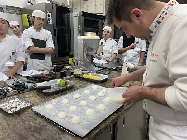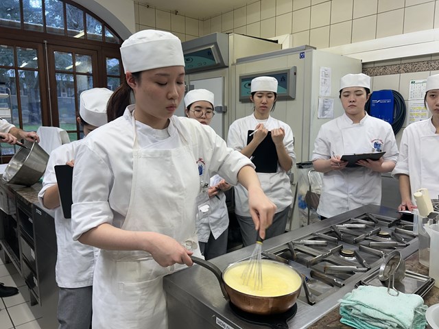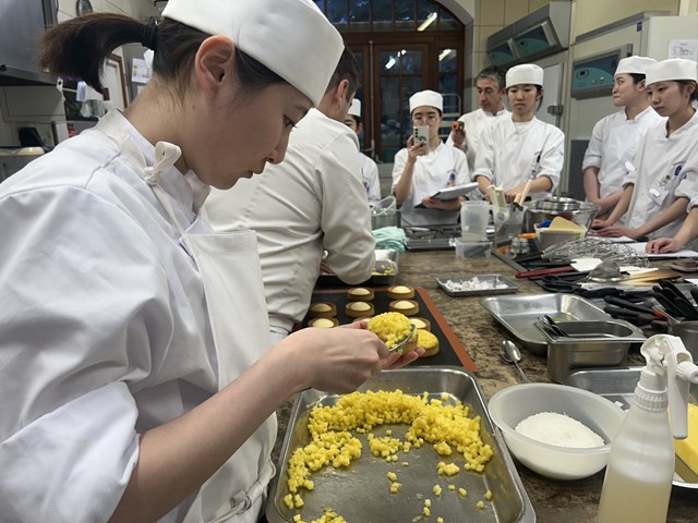学校での型とは違うものを使っているので研究生は少し苦戦しましたが、シェフにやり方をもう一度教わって、コツをつかめば素早くできるようになっていました。