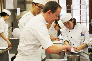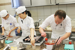 あっという間に進んでいくシェフのテキパキとした仕事の仕方、仕込みからお皿への盛り付けまで、無駄のない動きに学生たちもすごくいい刺激を受けていました。