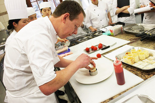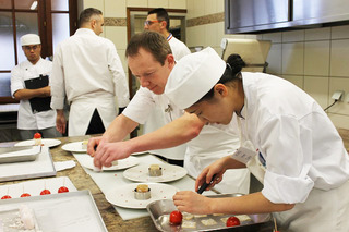 シェフの指示を貰いながら、ムースの組み上げや実際にお皿への盛り付けなど、シェフとコミュニケーションを取りながら積極的に助手をしていました。