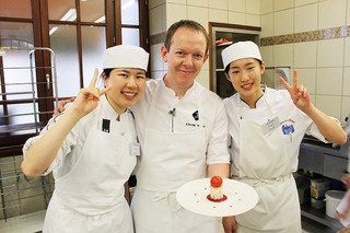 小池 伊万里さん「特に強く感じたのは作業の速さです。フランス校に来てからは素早い作業が求められます、今日シェフの作業を見ていて複数の作業を並行して行い本当に無駄がないと感じました。シェフの話すフランス語も最初は早くて聞き取れませんでしたが、後半は耳が慣れてきて、シェフの欲しい道具やデセールをどう仕上げるかなど聞き取ることができ、こちらの問いかけにも丁寧に応えてくださり楽しんで助手が出来ました。」
