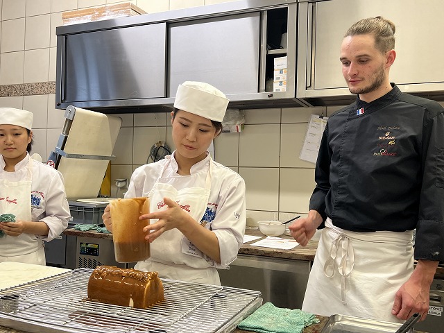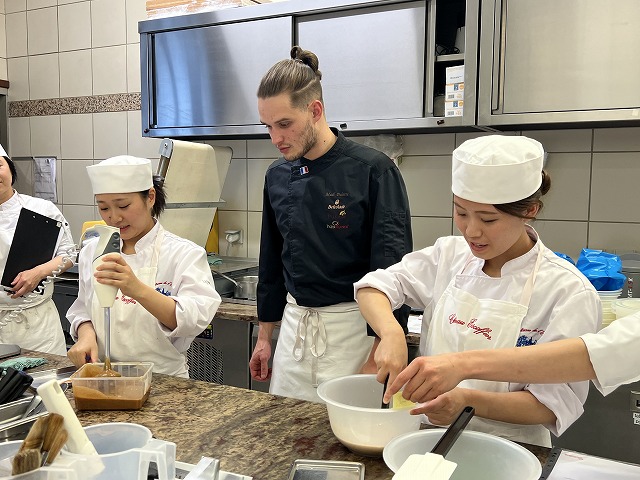 「やってよいですか?」「私も手伝えますか?」など覚えたフランス語を駆使して自分から作業に参加している姿はとても格好良いです!日頃の実習の成果を発揮し、得意の「もう一度、見せてください!!」も使っていました。