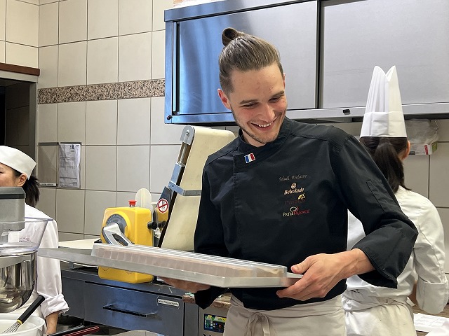 今日は「パティスフランス」のデモンストレーター、マエル・デュラトル氏にお越しいただきました。パティスフランスはプロフェッショナル向けに原材料を製造・販売をしているメーカーです。