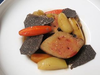 最後にフォワ・グラ、野菜、キノコを合わせてポ・ト・フのような料理の出来上がりです。