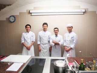 一番左が研修生、シェフを挟むように2名の研究生が緊張した顔で写っています。