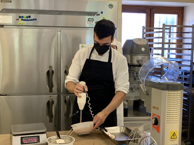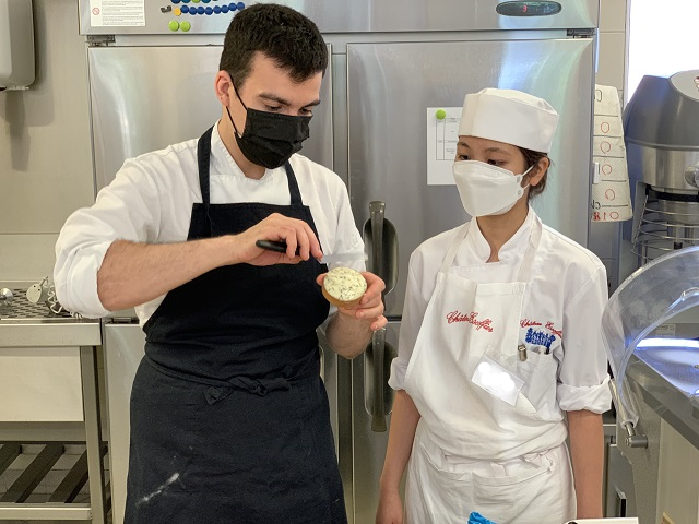 「今回アシスタントをさせていただき、次にする作業を理解して、必要なものを完ぺきに準備することは難しいけど、改めて大切なことだと感じました。アシスタントをすることが初めてでとても緊張しましたが、作業を丁寧に教えてくださり、自分の技術をもっと磨いてスムーズに作業を進められるようになりたいと思いました。このような機会はなかなかできない貴重な経験になりました。スタージュに行くまでも、行ってからもパティシエになるために努力しようと思いました!」