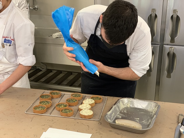 「今回デモのアシスタントをして、大変さ、そして間近でシェフの作業を見て手際のよさ、器具の使い方、材料の使い方がとても勉強になりました。これからもムニュー・スペシオや研修先で器具の使い方や材料の使い方等、学んだことを活かしていきたいと思います!」