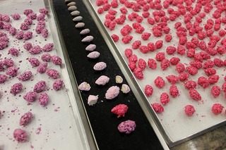 最後に、香料とアラビアゴムを混ぜたものを加えて味をつけ、表面を艶がけします。