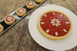 プラリネ・ルージュがレモン風味なので甘味の中にほのかにレモンが香るタルトに仕上がっています。