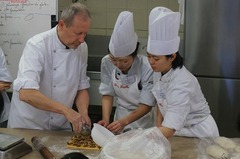 エスコフィエ校製菓コースの外来講習は、製パンの授業でした。Minoterie Vulliermet(製粉会社)のデモンストレーターをされているニコラ・ボナール氏にお越しいただきました。毎期パティシエ、キュイジニエ共に講習をしてくださっています。