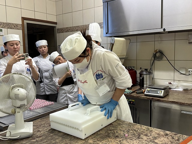 「初めて助手をして、シェフの段取りの良さや正確な作業、手際の良さに驚きました。目の前で沢山のコンフィズリーが出来上がっていくはとても楽しかったです。貴重な体験ができて良かったです。」