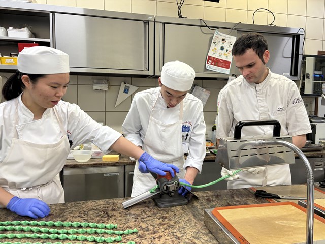 学生もシェフの作業を確認しながら一緒に作業をしていきます。
