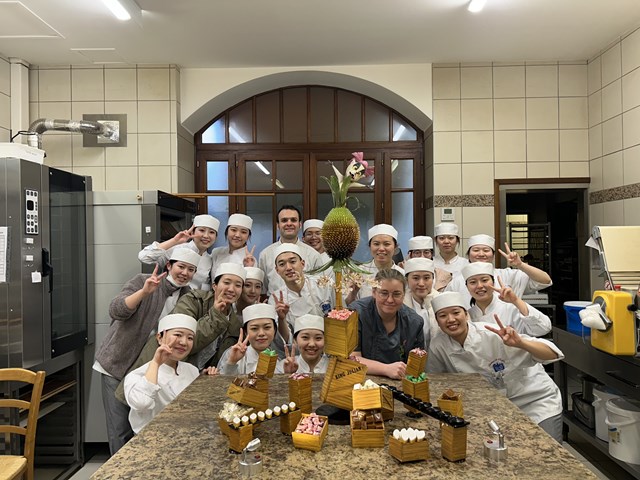 『普段作る機会が少ないコンフィズリーに触れることができて、とても良い経験になりました。今回の講習では、"自分もやりたい、私もしていいですか?"5か月間で習ったフランス語を使って助手をできたことはフランスに来たばっかりの自分と比べて成長を実感できました!沢山アシスタントできて楽しかったです。』