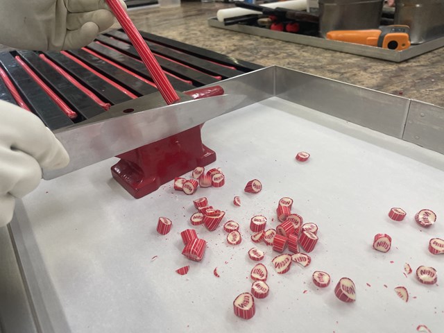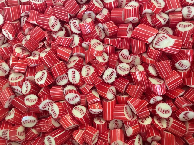 なんと飴でKLEINの文字が!日本でいう金太郎飴と同じでどこを切り取っても同じ断面が出てきます。
