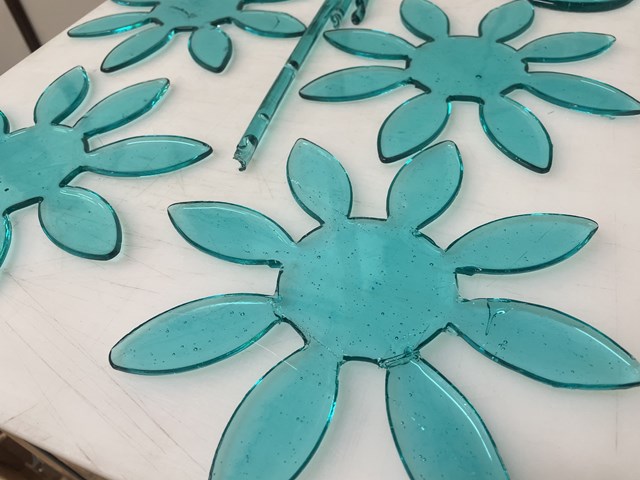 出来上がった飴を機械に入れてぐるぐる回すと、あっという間にこの四面体が完成します。あっという間に出来上がるキラキラと艶のある飴に研究生達もすごーいと目が煌めきます!