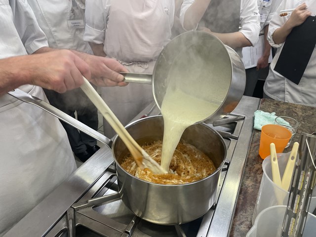 砂糖を煮詰める工程では、しっかりキャラメル化させて甘すぎず、でも苦すぎないところで止める事が大事だとおっしゃっていました。